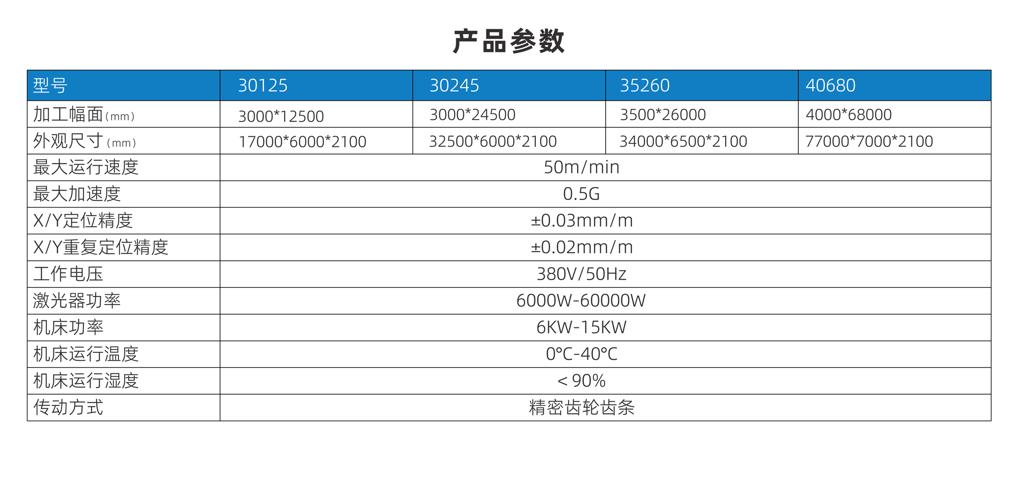 加工幅面(mm) 3000*12500 3000*24500 3500*26000 @4000*68000